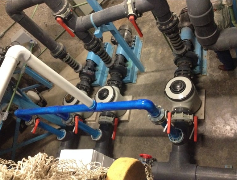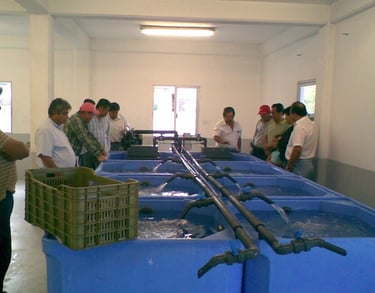 Sistemas de filtración, recirculación y diseño de granjas acuícolas.